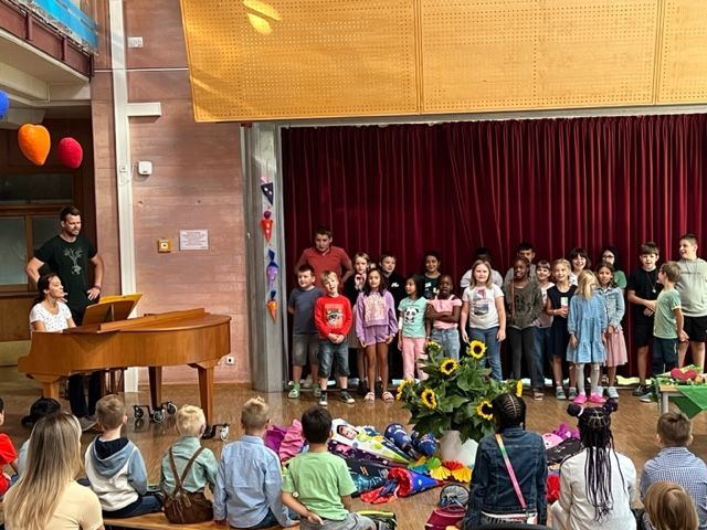 Der Kinderchor der Eugen-Papst-Schule sang für die Kinder den Schulklassiker.