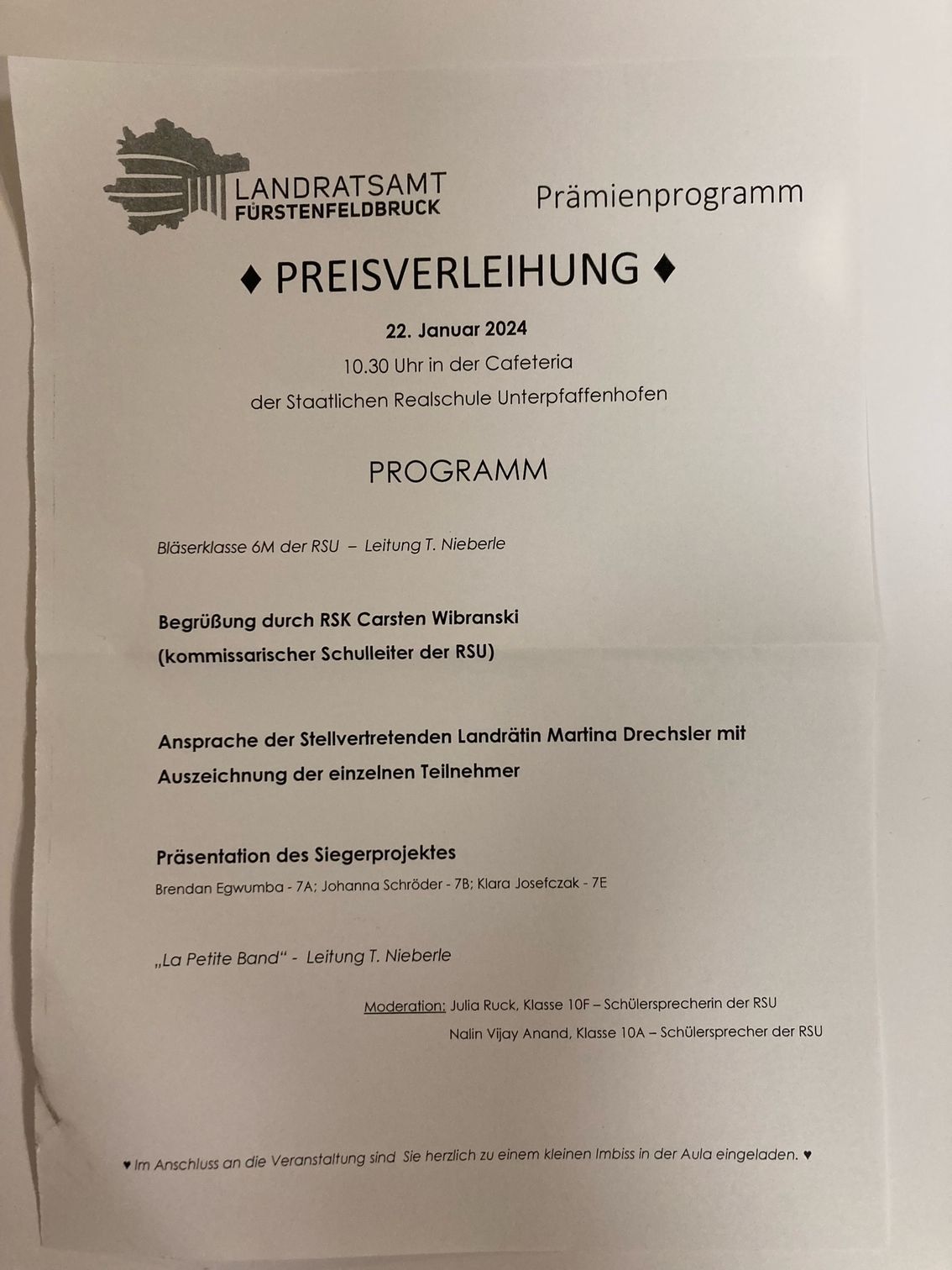 Unsere Schule hat den 2. Preis beim Prämien-Programm des Landkreises Fürstenfeldbruck 2023 gewonnen.
