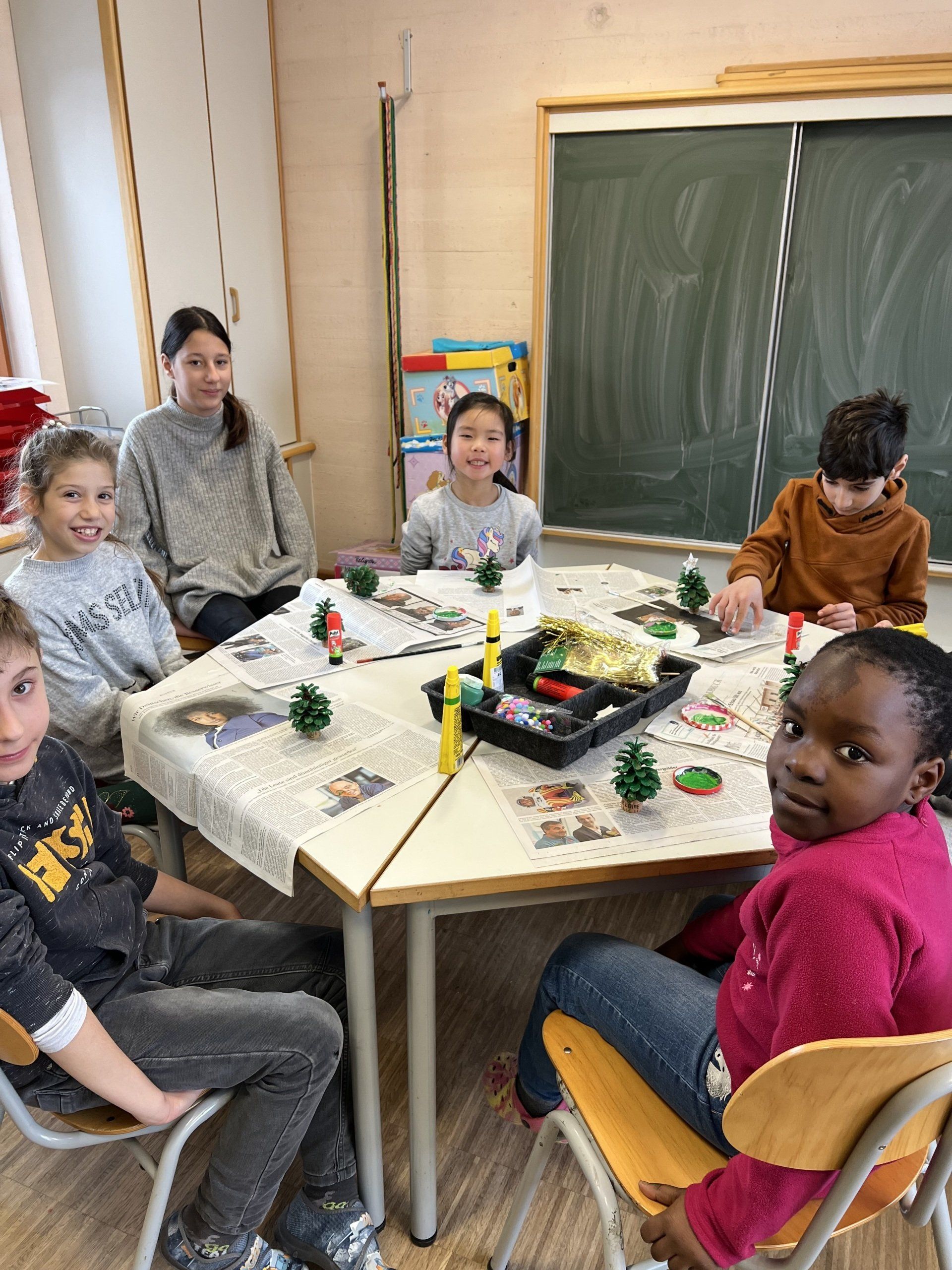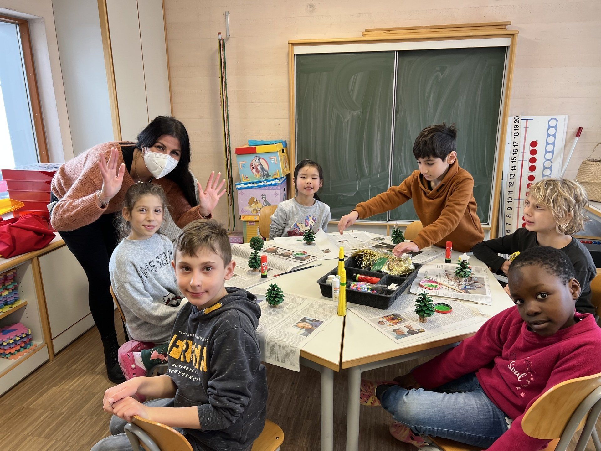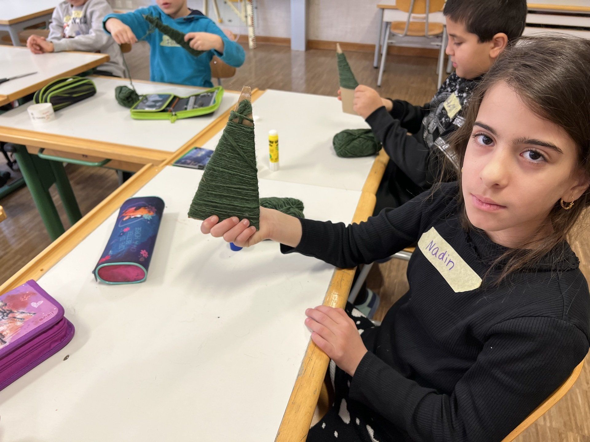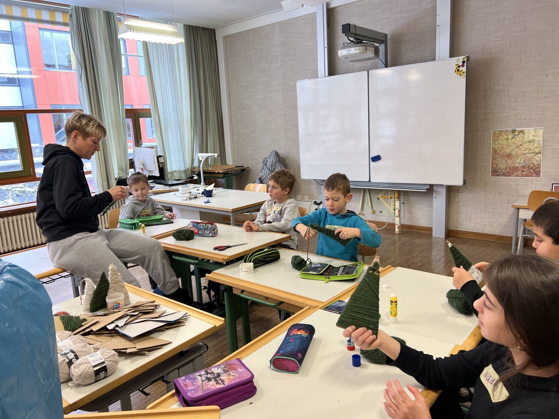 Endlich ist es wieder möglich, klassenübergreifende Aktionen in gemischten Gruppen durchzuführen! Die Schülerinnen und Schüler der Diagnose-Förder-Klassen konnten aus vielen tollen adventlichen Bastelangeboten wählen. So wurden z. B. Weihnachtsbäumchen aus Wolle, aus Kiefernzapfen und aus Papptellern hergestellt, mit Nelken gespickte Orangen verbreiteten adventlichen Duft, Schneeflocken entstanden aus Butterbrottüten und Sterne in Origami-Falttechnik. Selbstgemachte Weihnachtskarten, geprickelte Lichterhäuschen, mit Transparentpapier beklebte Teelichter und selbst hergestellte Schnee"kugeln" rundeten das Angebot ab.