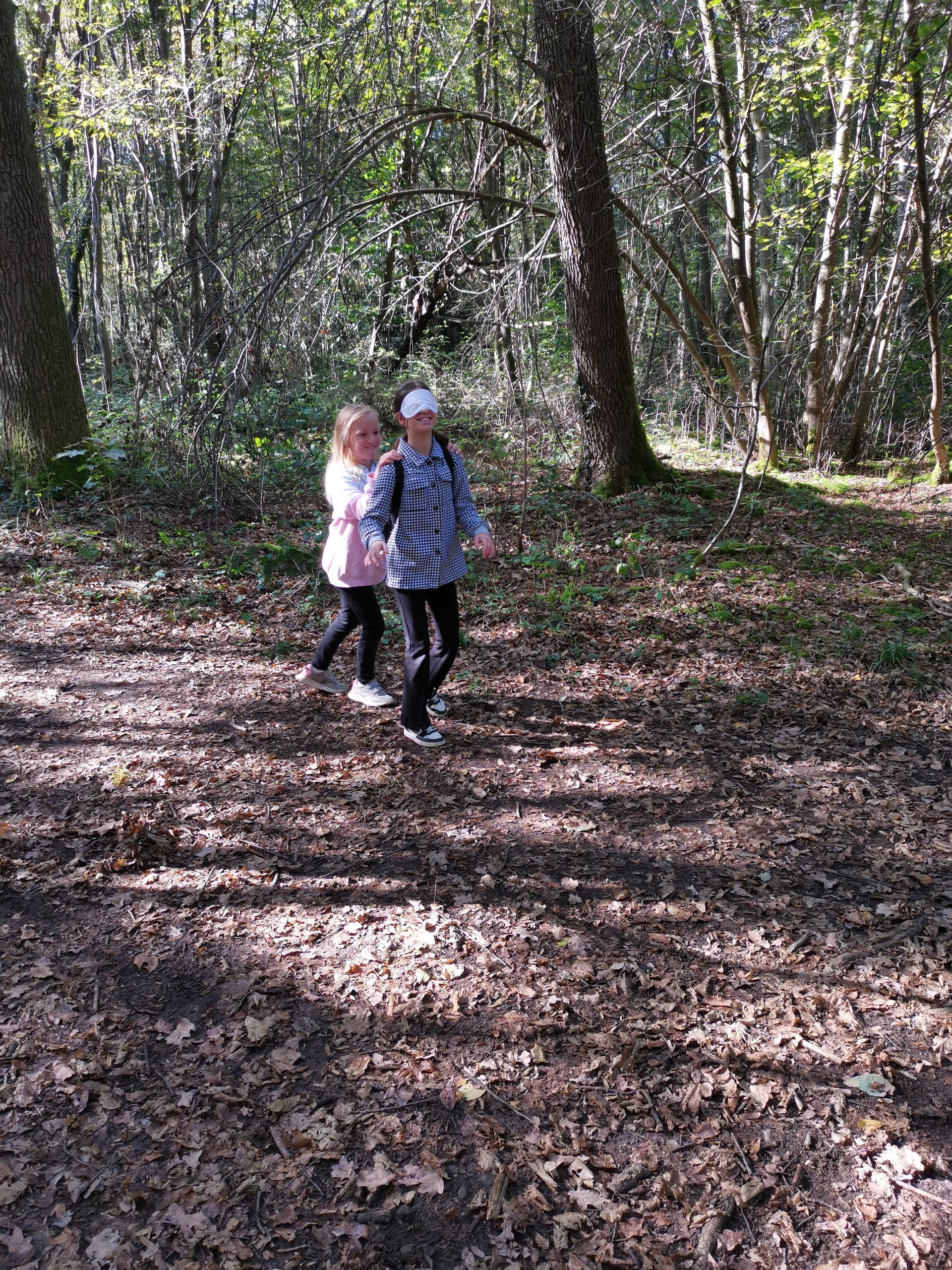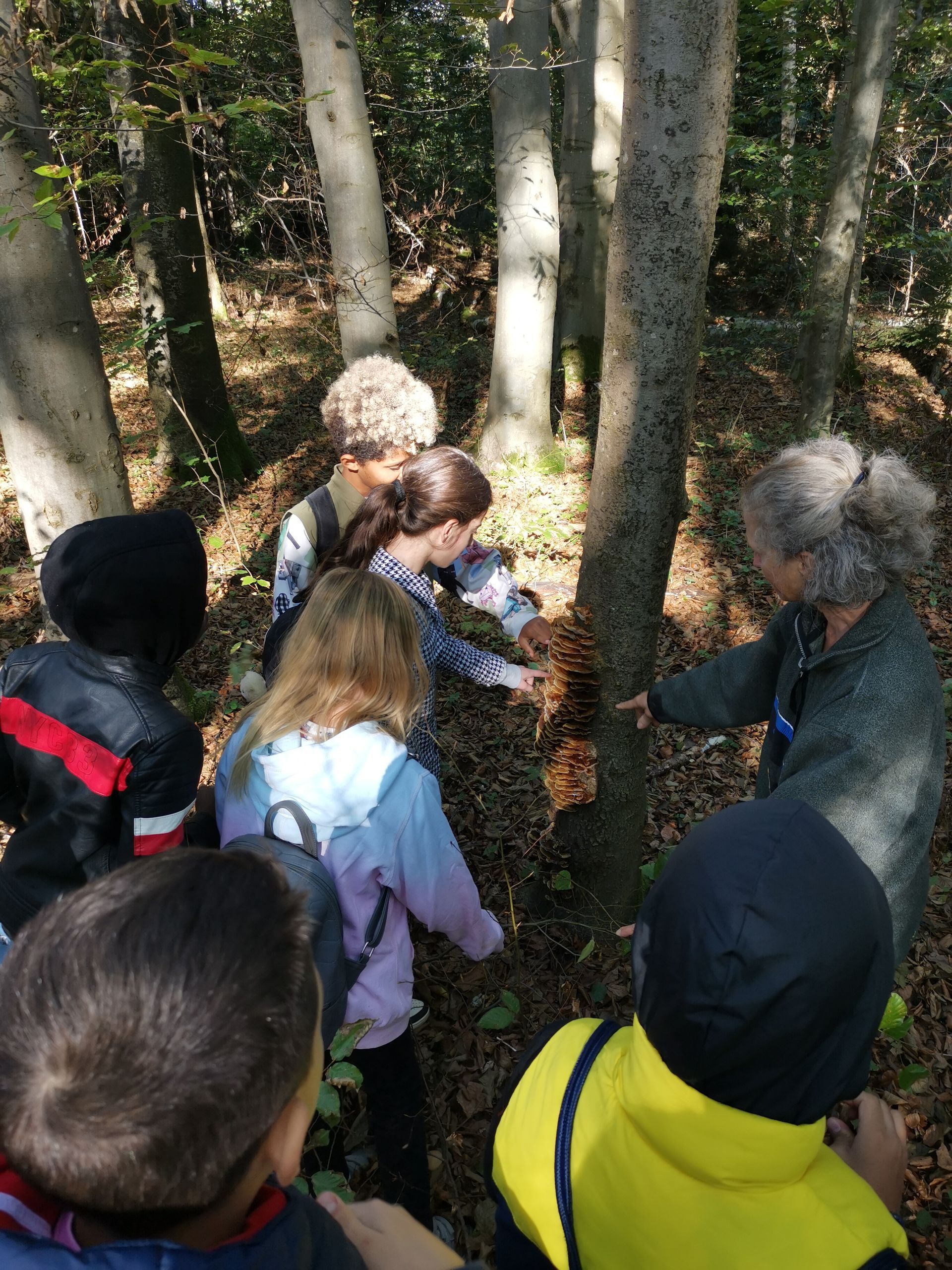 Die Klasse 3b durfte am 25.09.2023 mit einer Försterin einen Ausflug in den nahegelegenen Wald starten. Dort lernten wir unterschiedliche Bäume, Farne und Pilze mit ihren Eigenschaften kennen. Mit verbundenen Augen führten sich die Schülerinnen und Schüler gegenseitig an Bäume, um die Beschaffenheit der Rinde zu erfühlen.