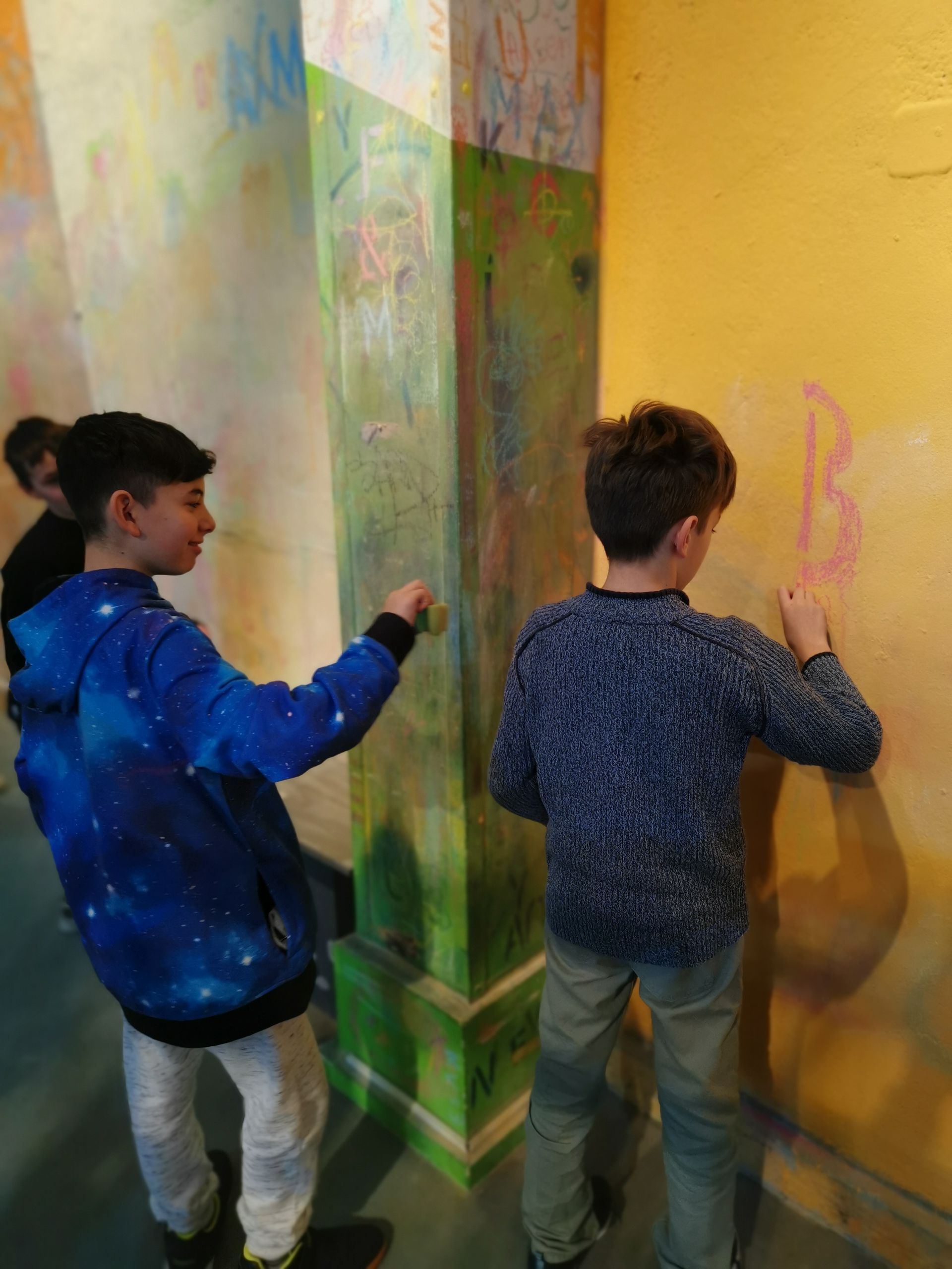 In der dafür extra aufgebauten Kleinstadt im Museum waren wir in Sachen Streetart unterwegs. Die Wände durften hier beklebt, mit Kreide bemalt oder mit Wasser bespritzt werden. Eigene Kunstwerke aus Ton wurden modelliert oder Maueraussparungen mit Legobauten gefüllt.