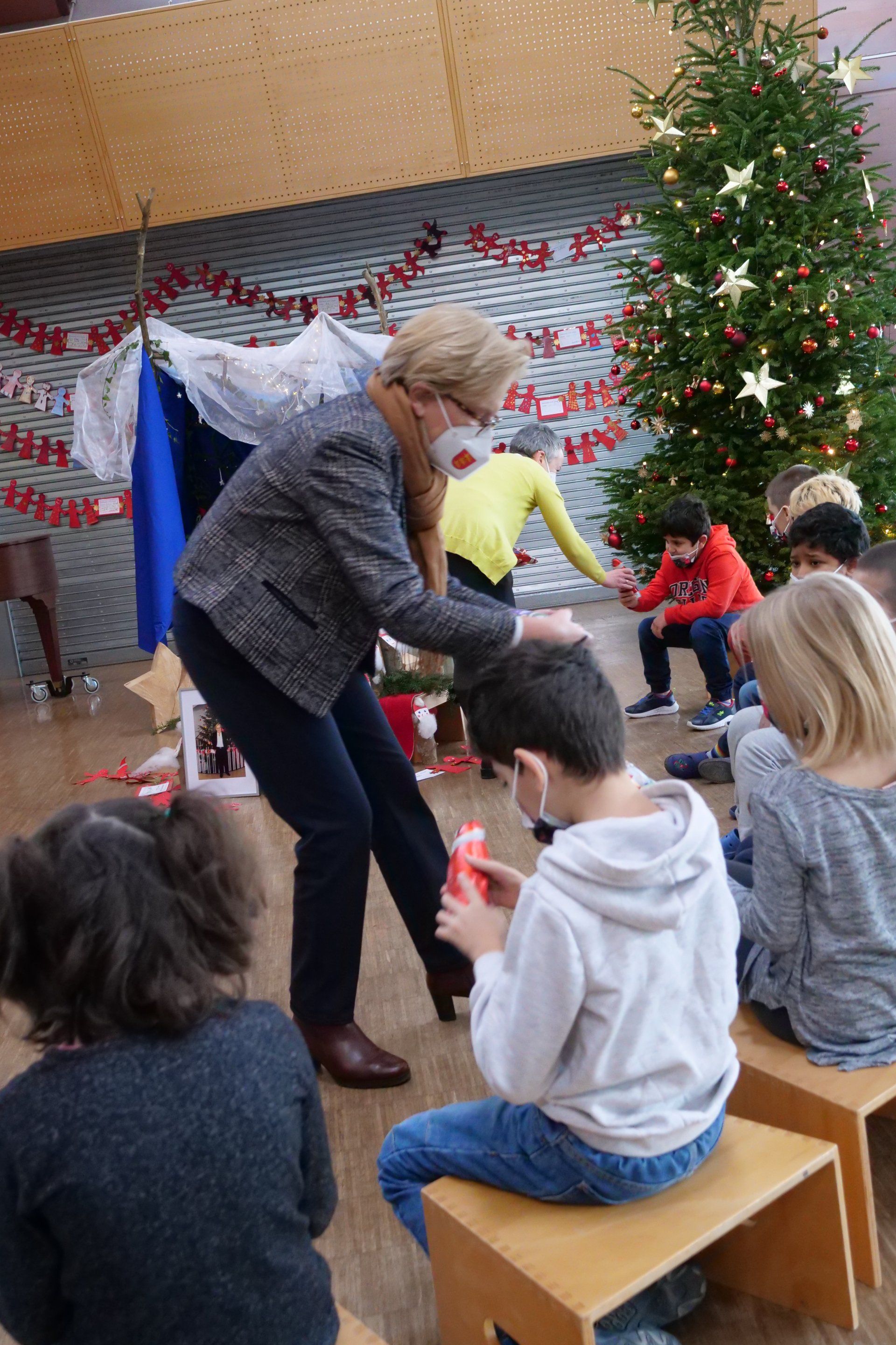 Als großes Danke-Schön an die Schule überbrachte Frau Els ein Foto des Christbaums und für alle Schüler der Schule einen Schokoladen-Nikolaus. Die Freude war riesig!