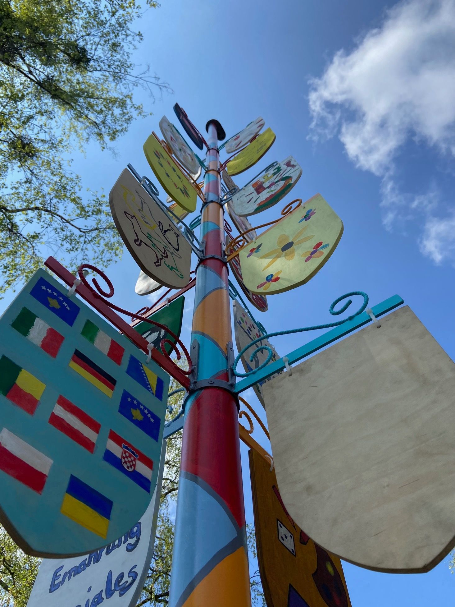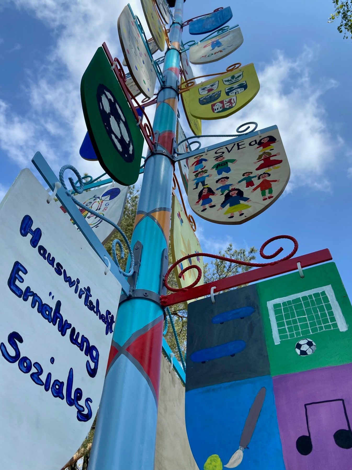 Am 03.05.2023 wurde unser Schul-Maibaum im Beisein aller Schülerinnen und Schüler mit vereinten Kräften aufgestellt.