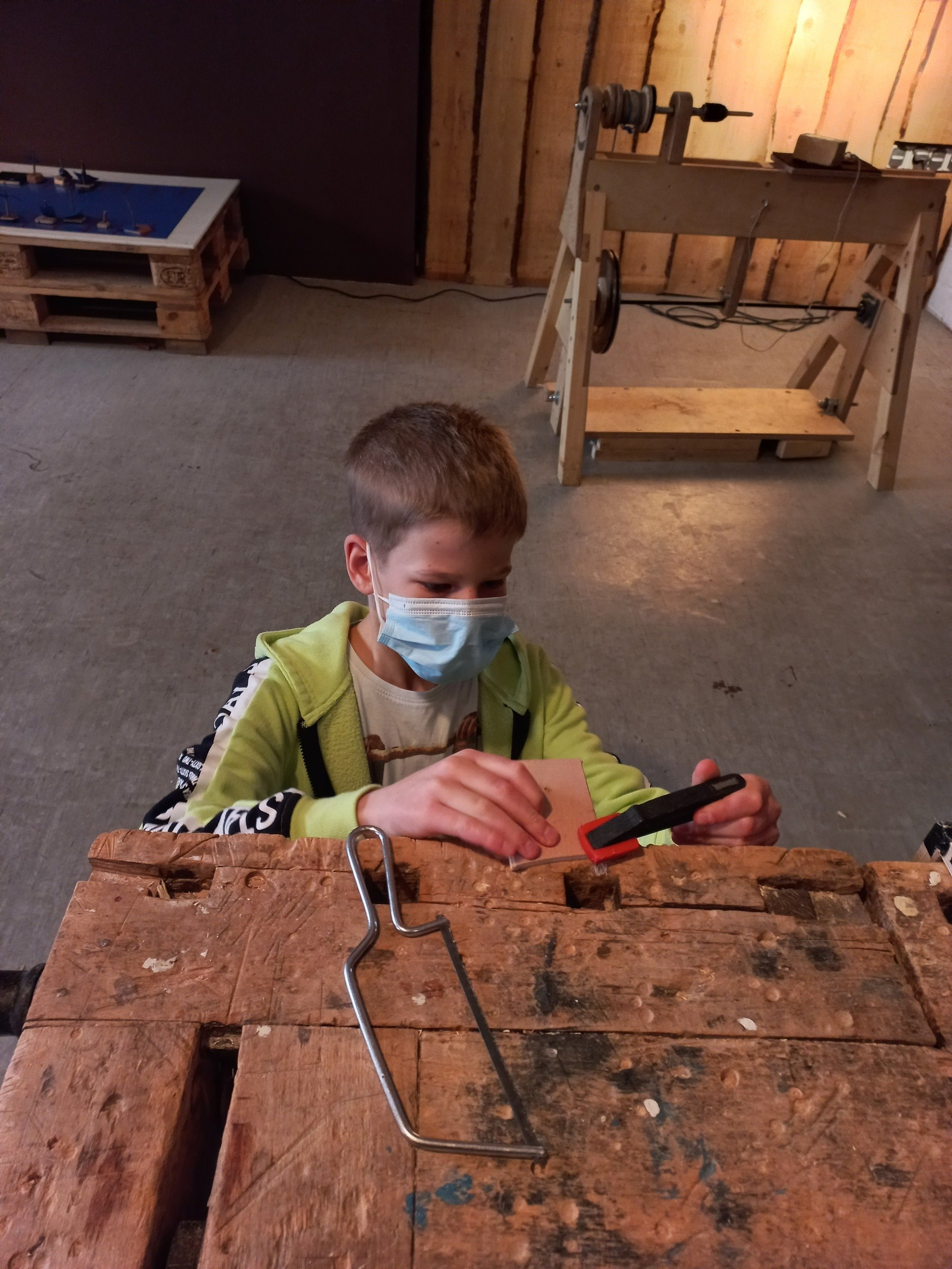Zum Abschluss unseres Museumsbesuchs konnten wir in der Werkstatt drechseln, bohren, schleifen und sägen.