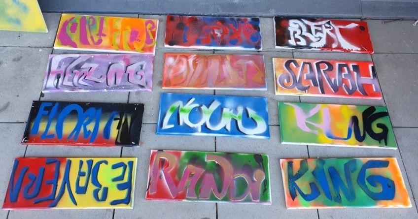 Auch die Klasse 5 durfte an dem Graffiti-Workshop mit dem Künstler Aloun teilnehmen.