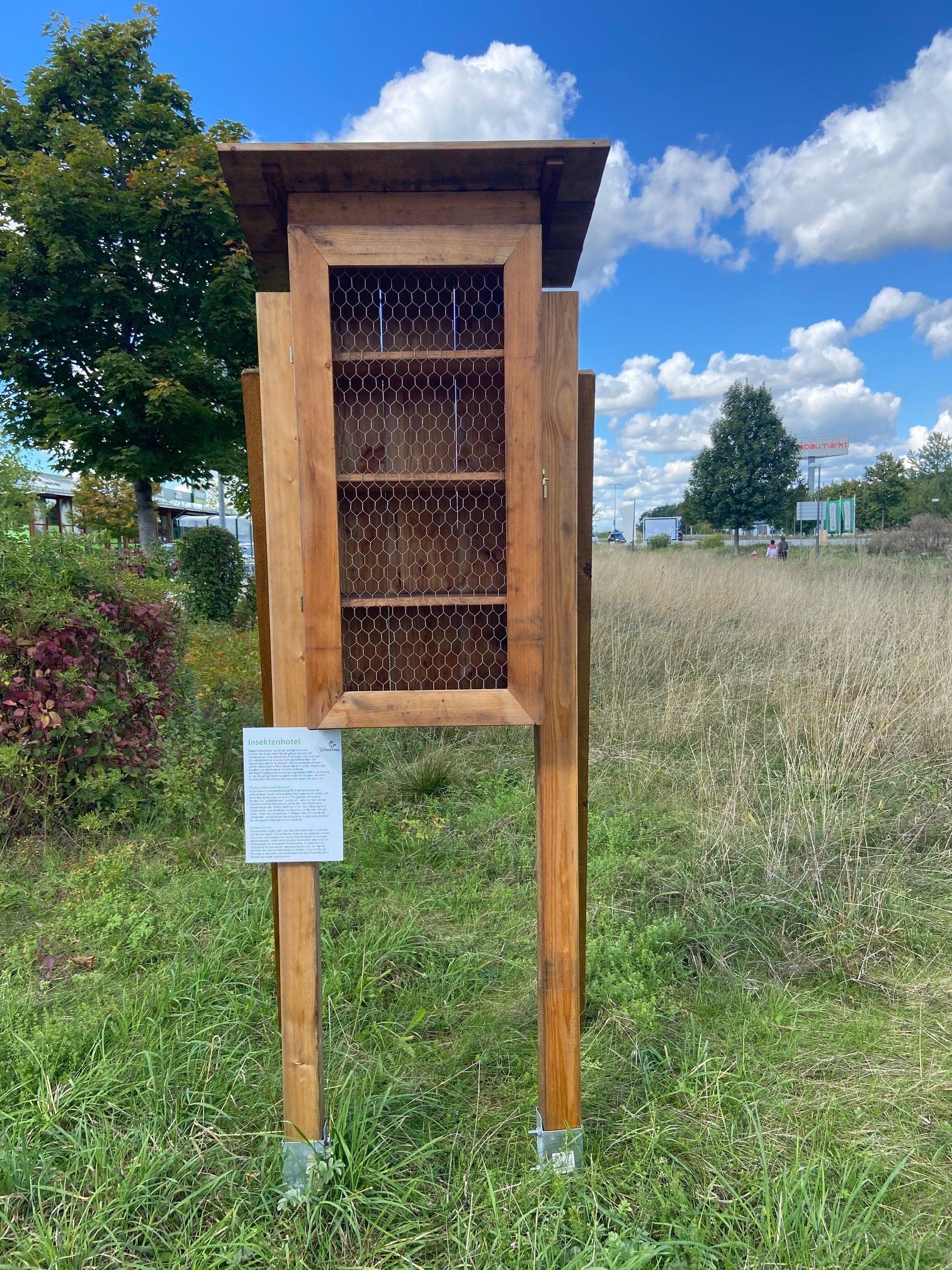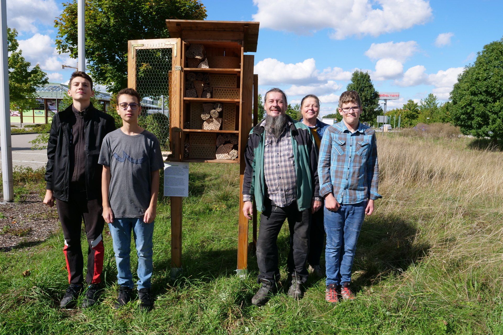 Gebaut wurden die Insektenhotels von Mitarbeitern der Schülerübungsfirmen der Eugen-Papst-Schule unter der Leitung von Herrn Oliver Beran im vergangenen Schuljahr.