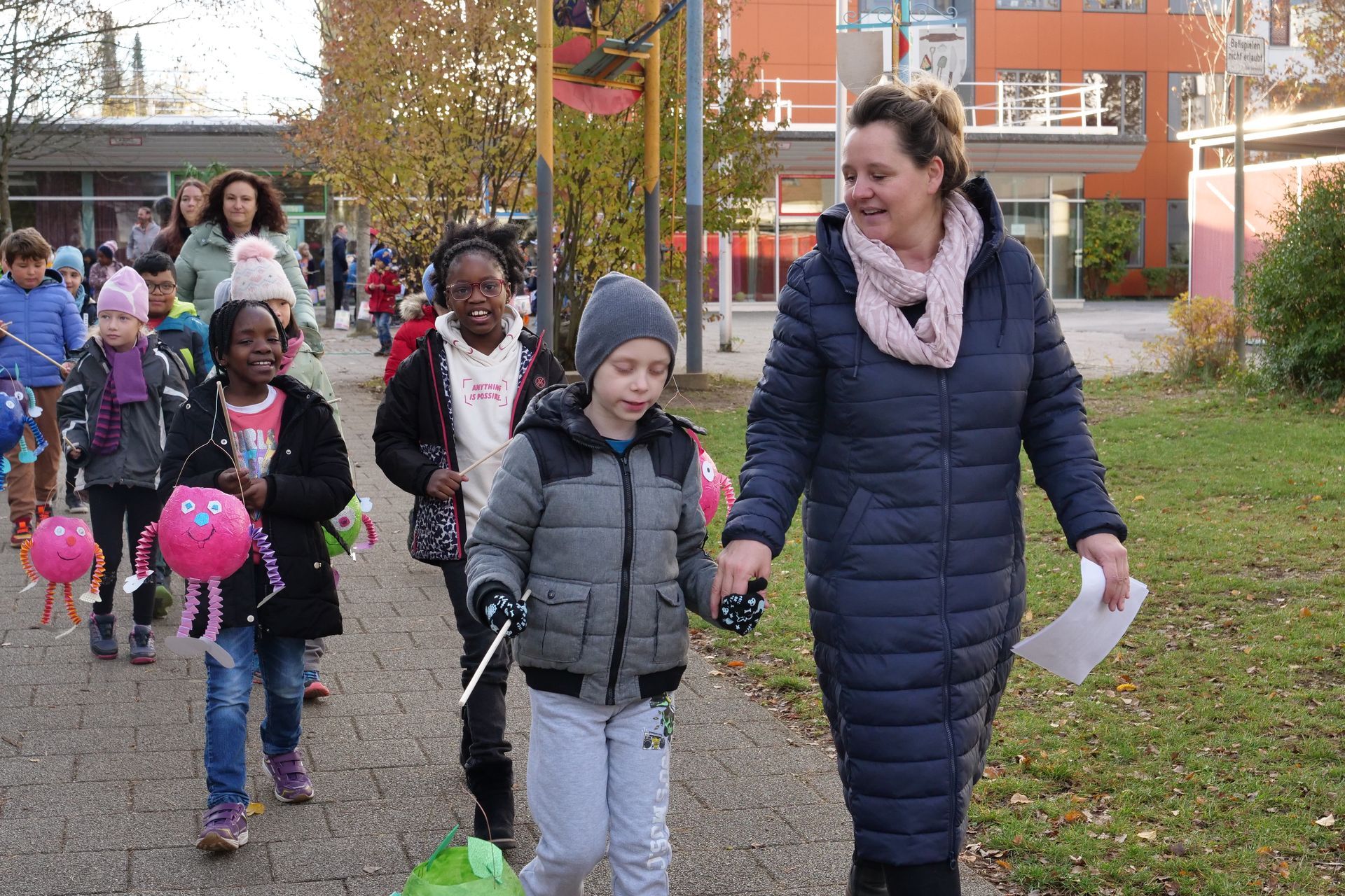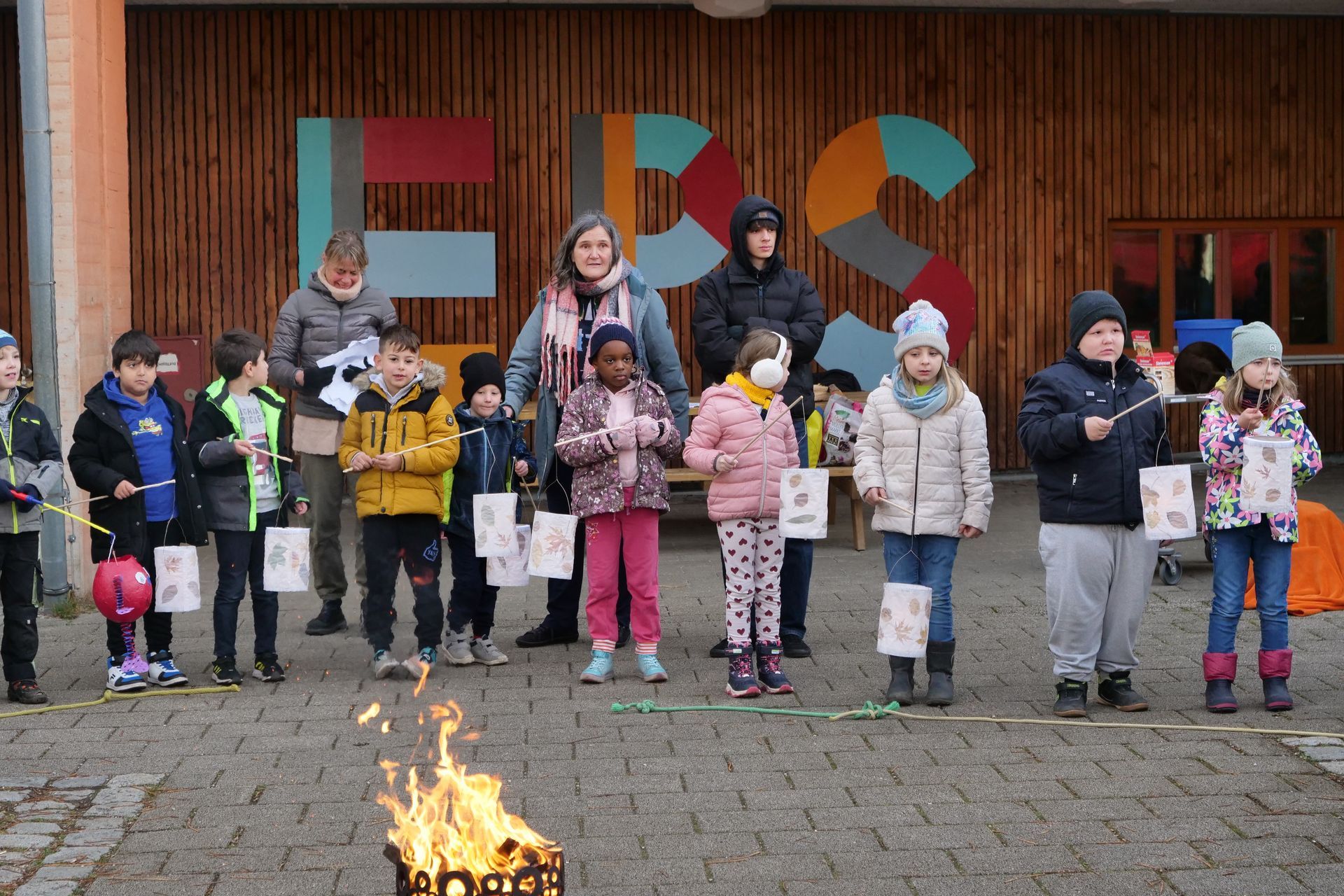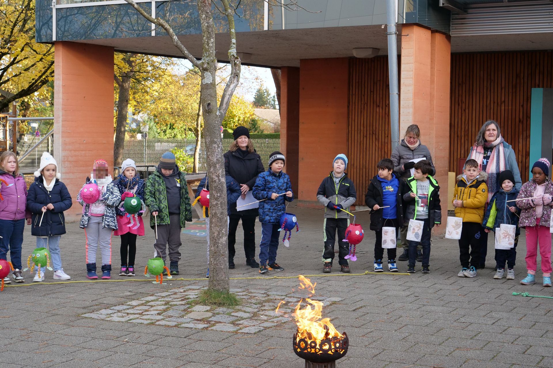 Mit selbstgebastelten Laternen unterschiedlichster Formen und Größen trafen sich die Kinder der SVE (Schulvorbereitende Einrichtung) und der Diagnose- und Förderklassen im Pausenhof am Feuer.