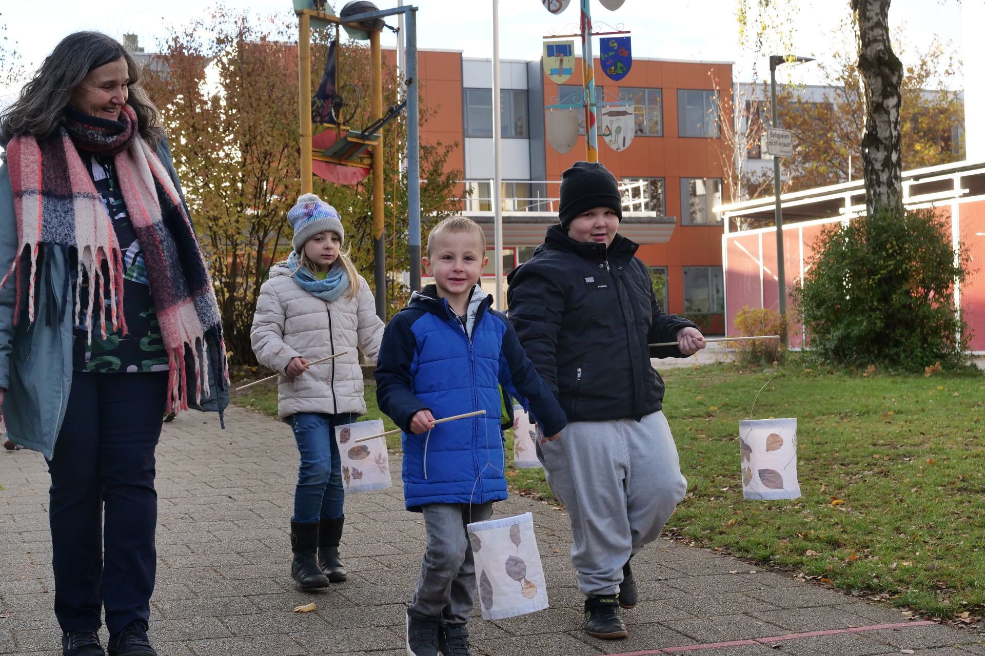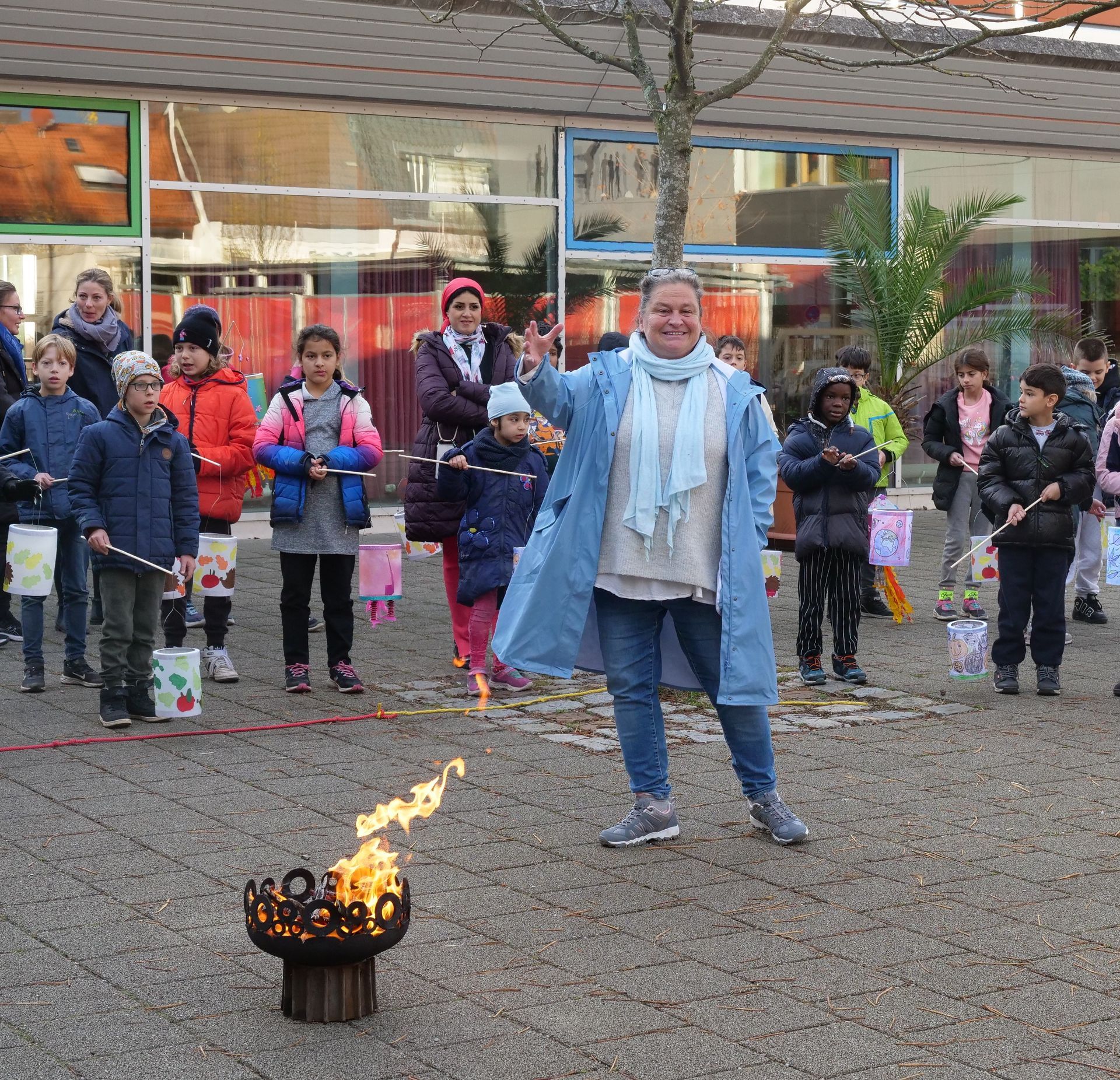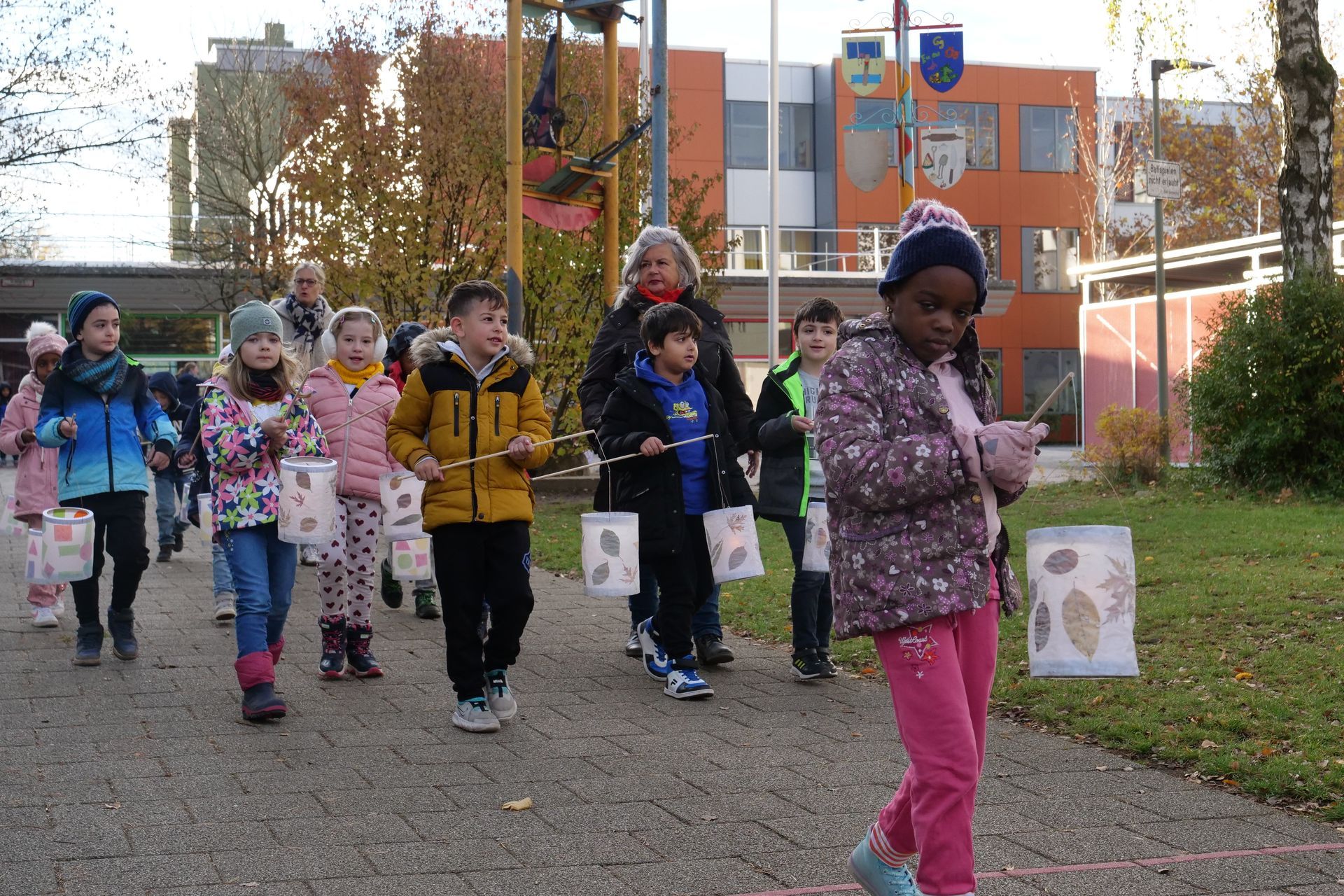 Mit selbstgebastelten Laternen unterschiedlichster Formen und Größen trafen sich die Kinder der SVE (Schulvorbereitende Einrichtung) und der Diagnose- und Förderklassen im Pausenhof am Feuer.