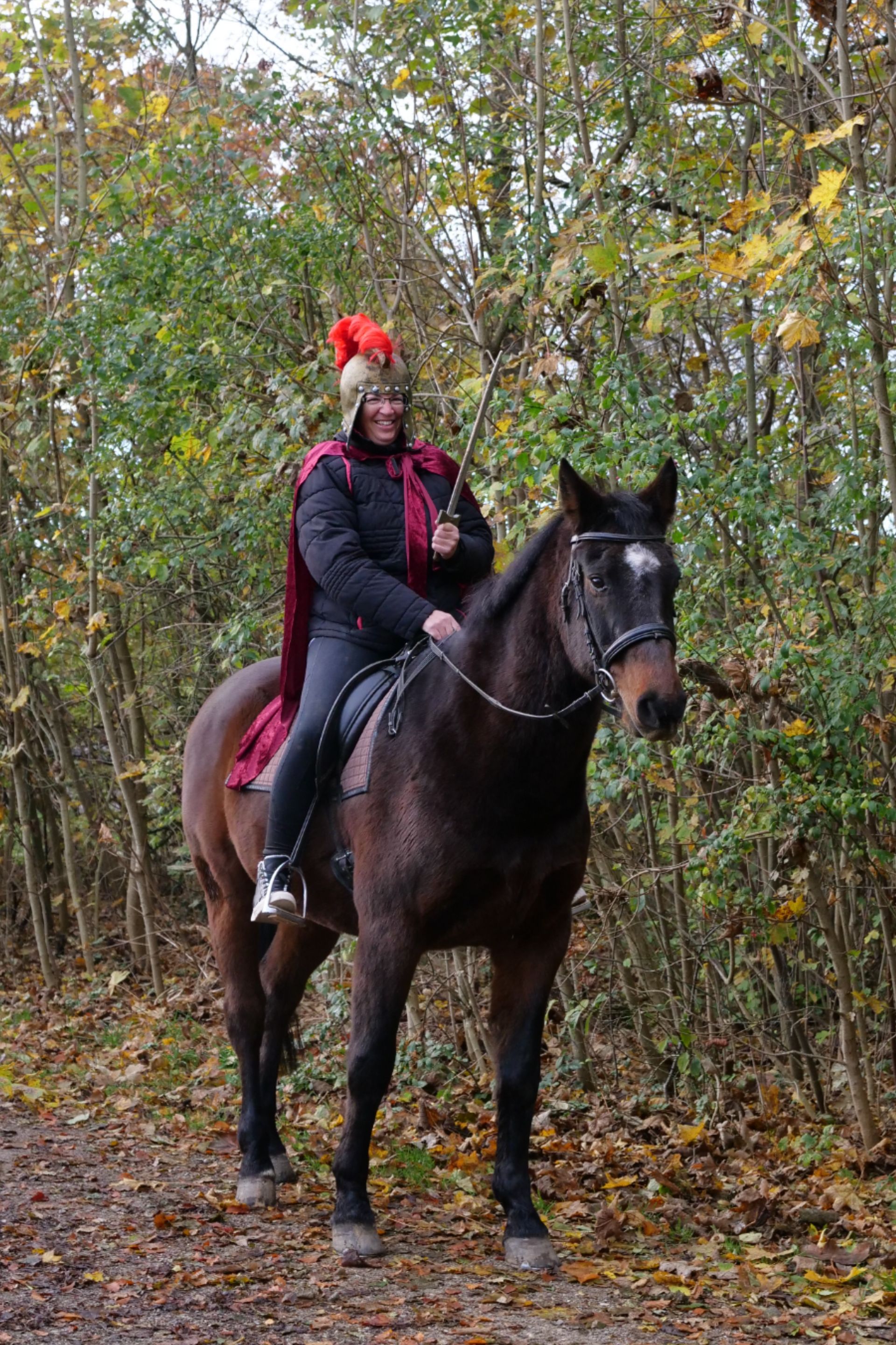 Beim Martinsumzug im benachbarten Park in der herbstlichen Witterung klangen die Martinslieder und wir trafen Sankt Martina auf ihrem Pferd mit Mantel und Schwert.